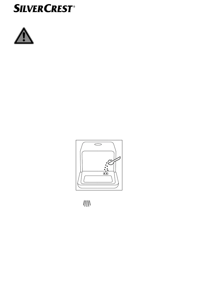 Mindig közvetlenül a mosogatási folyamat elindítása előtt töltse be a mosogatószert, hogy