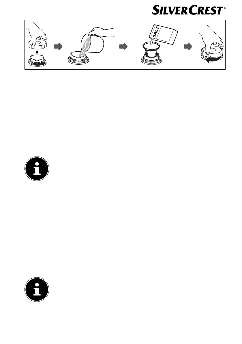 Füllen Sie vor der ersten Benutzung ca. 0,5 l Wasser in den Salzbehälter (11) (siehe