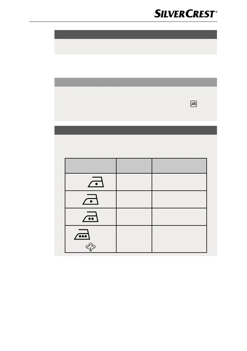 welcher Temperatureinstellung das Kleidungsstück zum Bügeln geeignet ist.