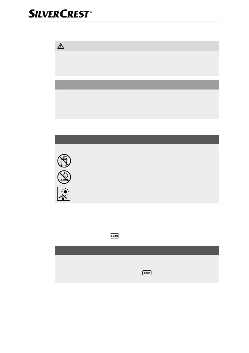 ► Tauchen Sie das Gerät zum Reinigen auf keinen Fall in Wasser.