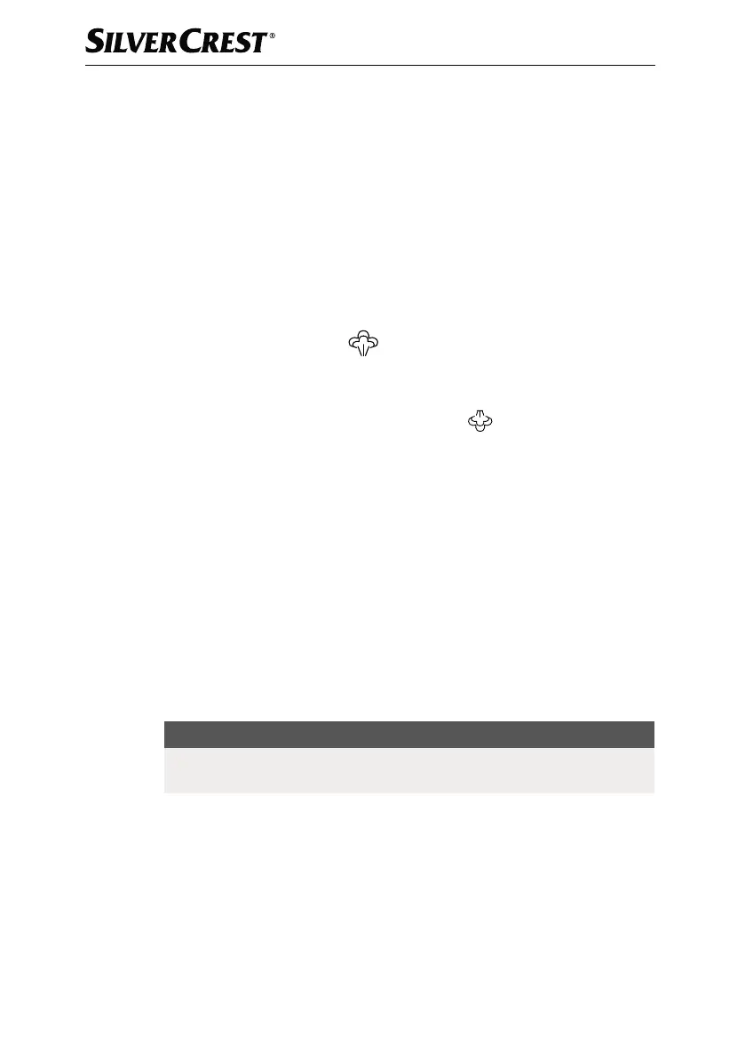 4) Appuyez sur la touche intensité de vapeur z