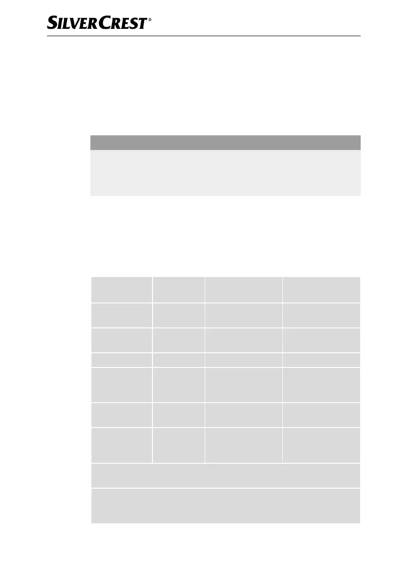 Časi in količine, navedeni v tej tabeli, so orientacijske vrednosti in se lahko