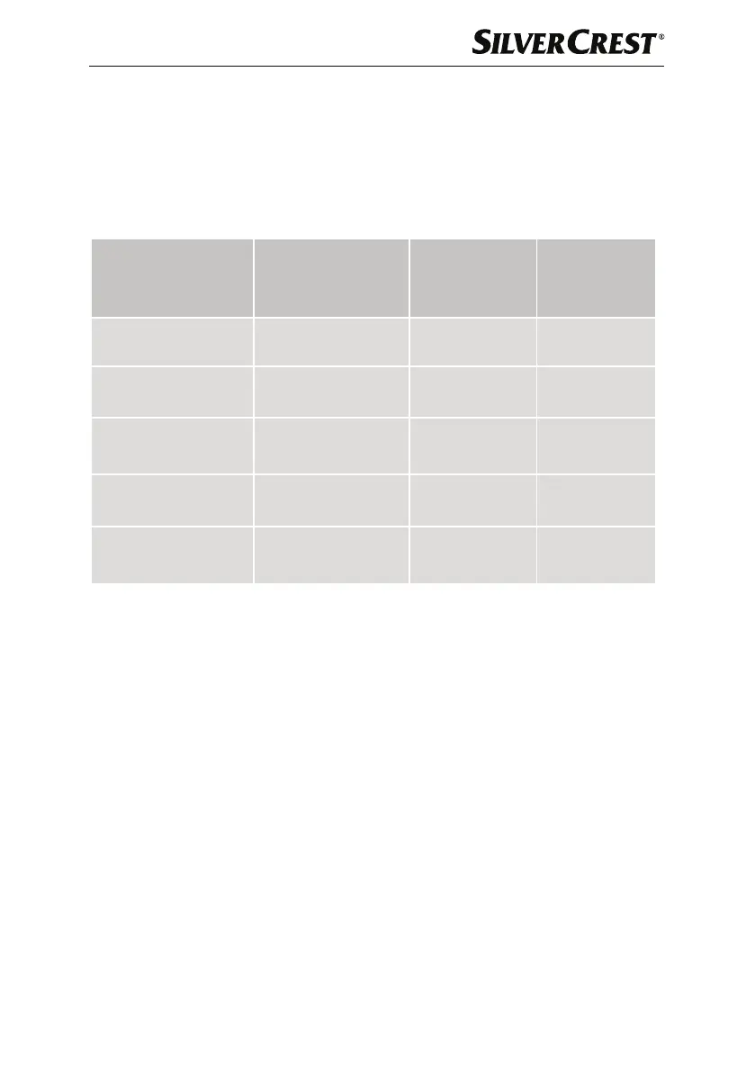 dienti diversi. I dati nella tabella si riferiscono al livello di temperatura “Max”. Adeguare le