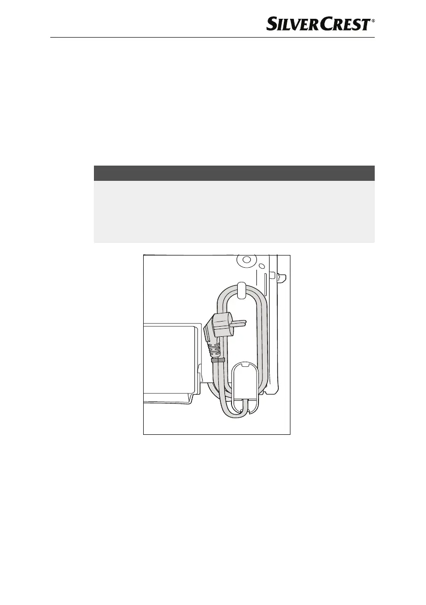 ► Klemmen Sie den Netzstecker zwischen aufgewickeltem Netzkabel und