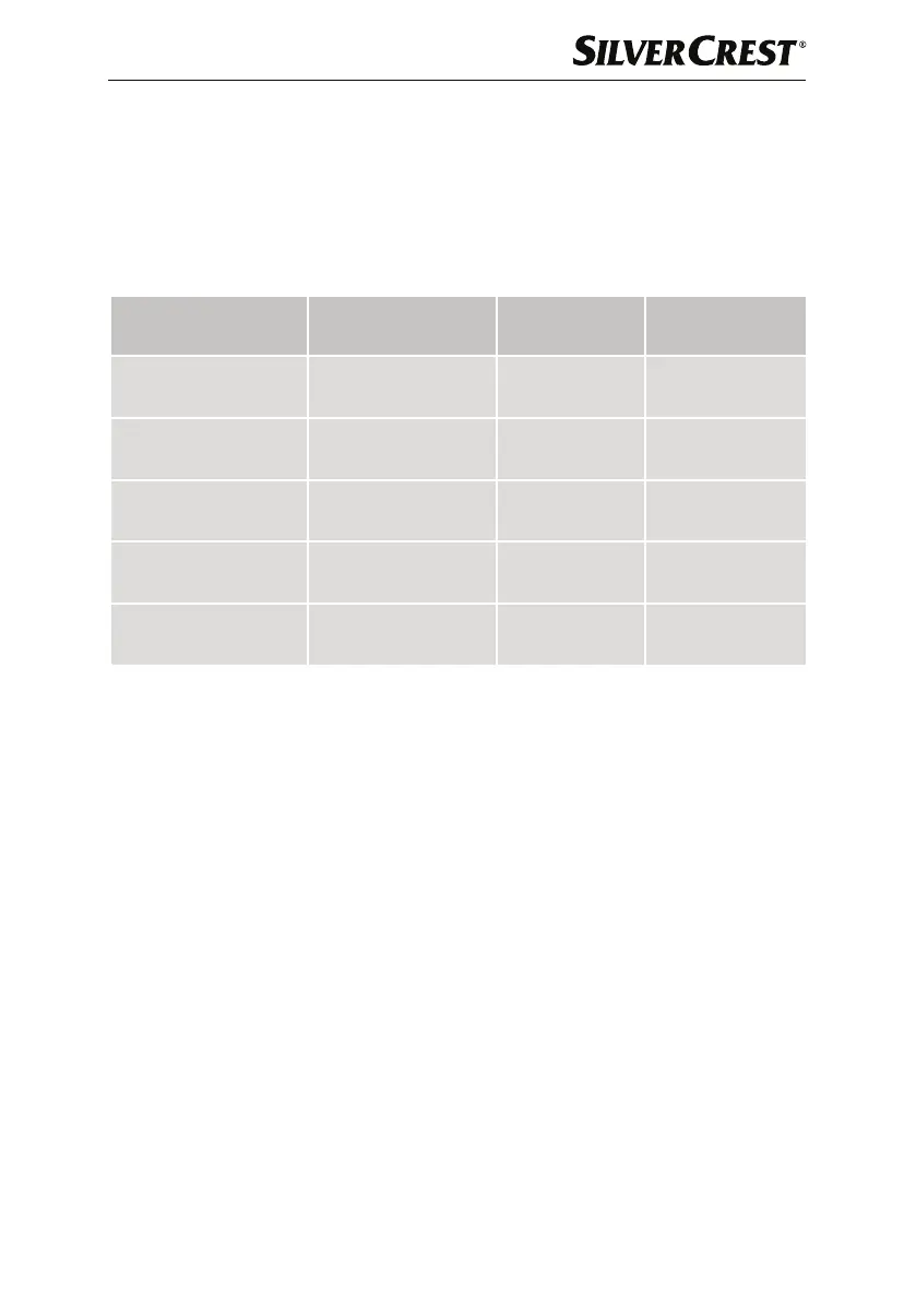 différents ingrédients. Les indications du tableau se réfèrent au niveau de température «Max».
