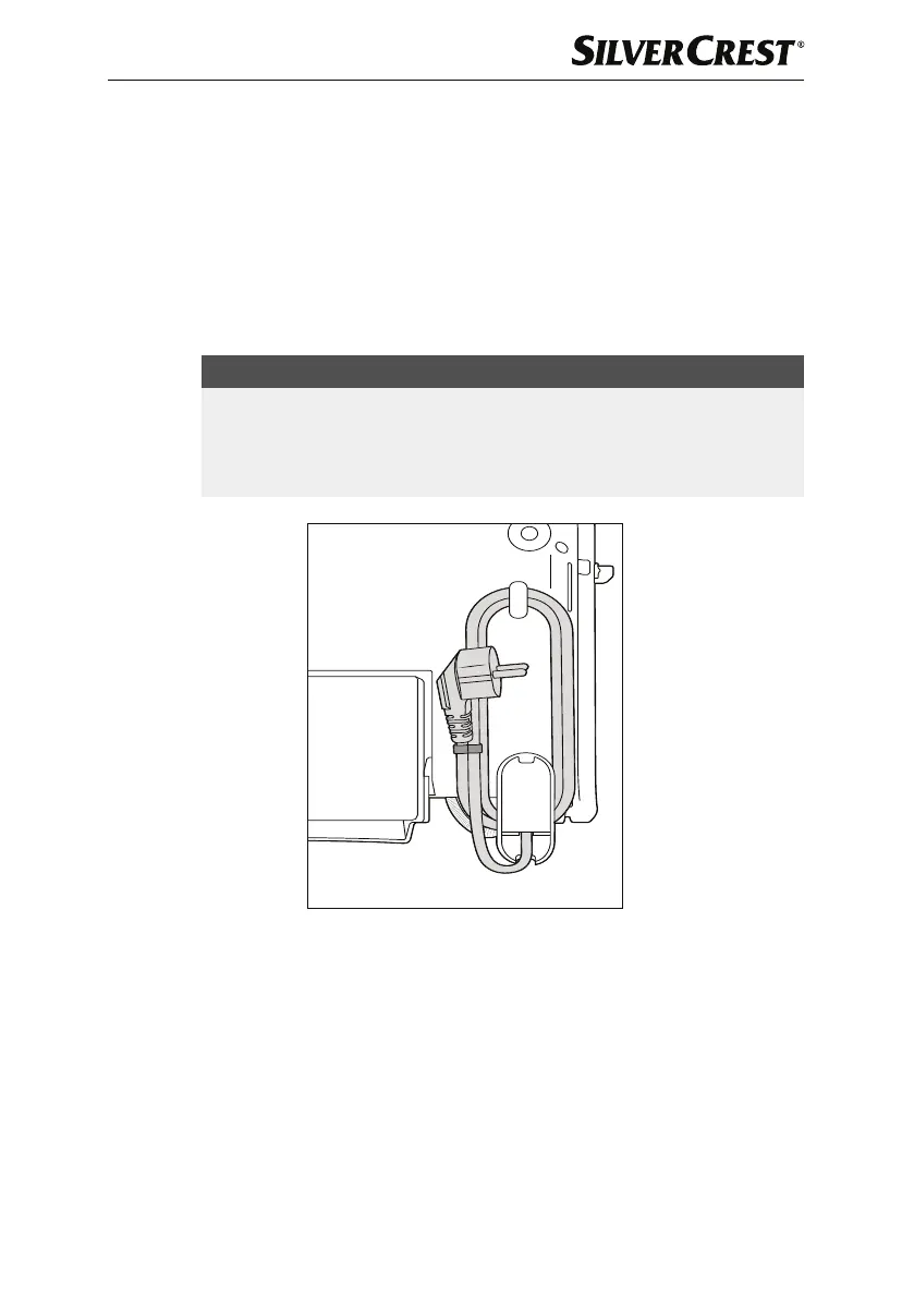 ► Klem de stekker tussen het opgerolde snoer en de opvangbak voor sappen 9.