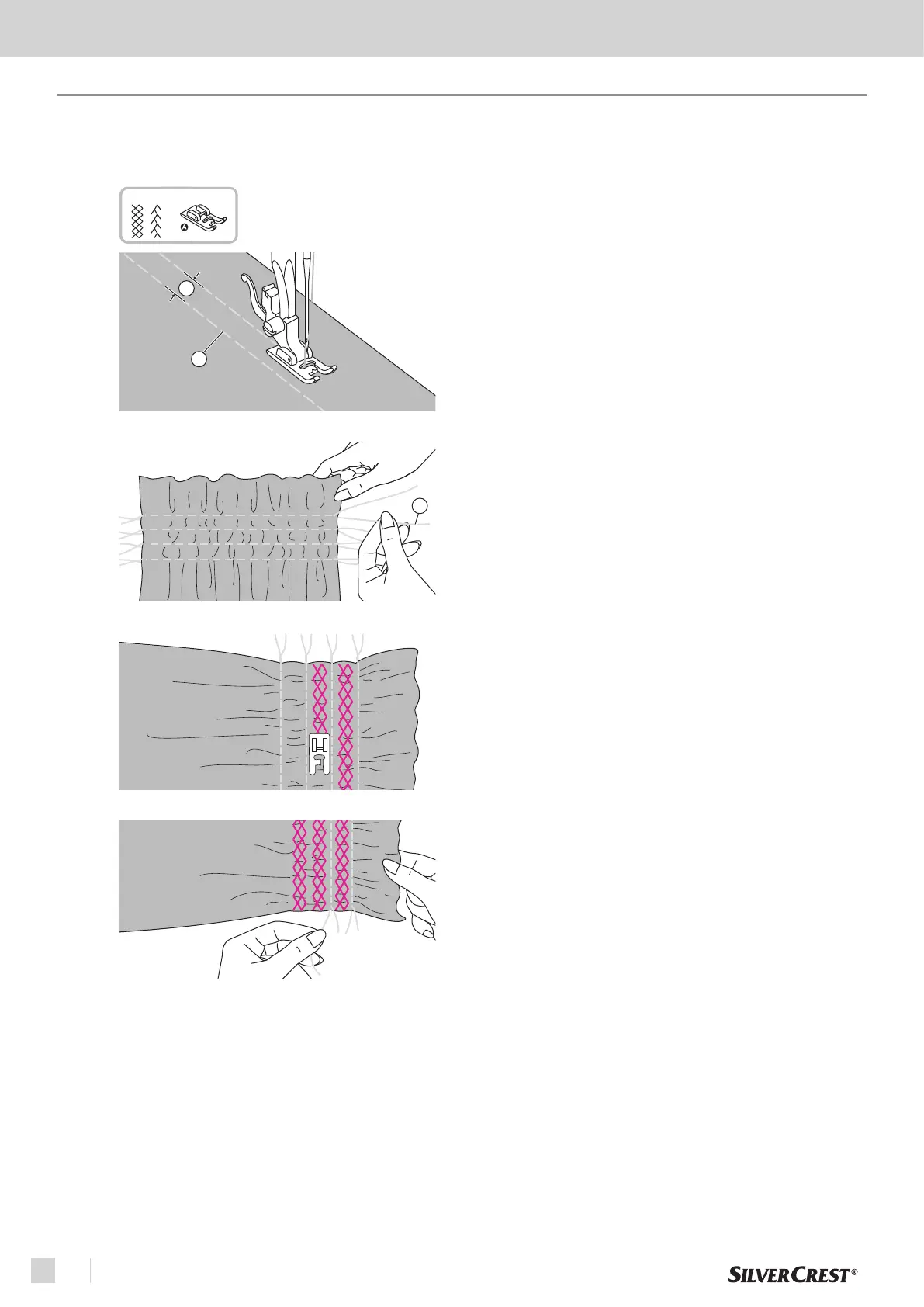The decorative stitch over ruffles is called "smocking". Smocking is used to decorate the front of blouses or cuffs. The smocking stitch adds texture and