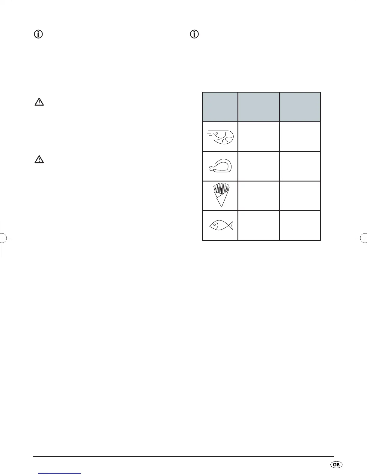 the hot areas of the deep fryer. Risk of electric