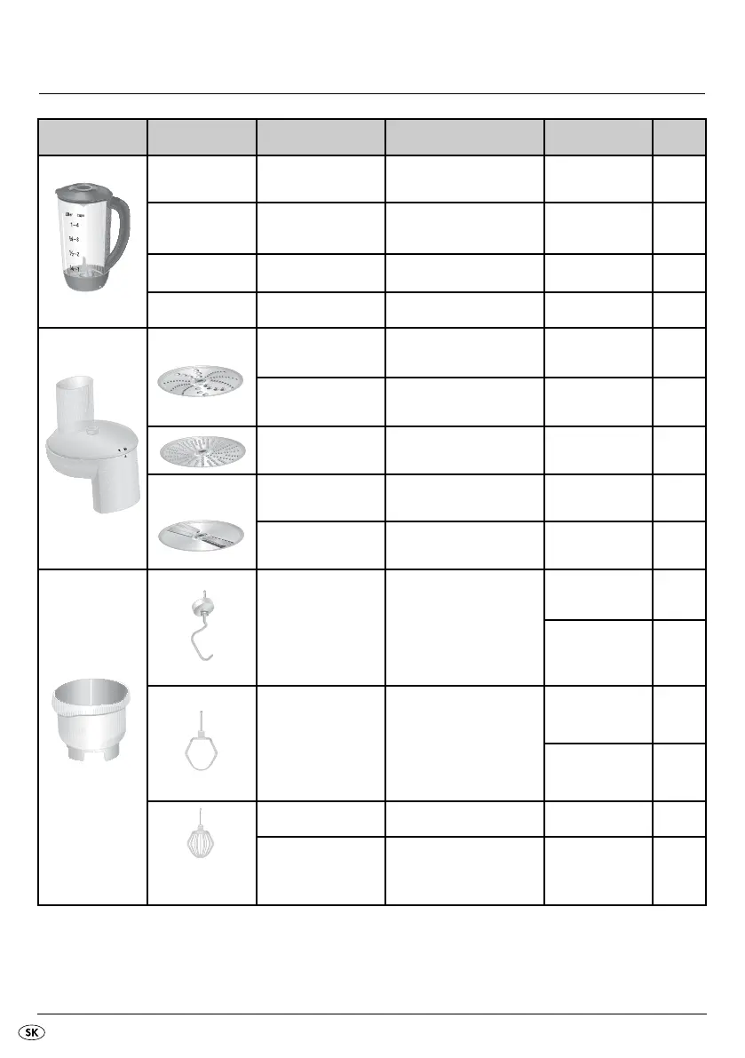 *1: Použite hrubú stranu výmenného strúhacieho alebo krájacieho kotúča.