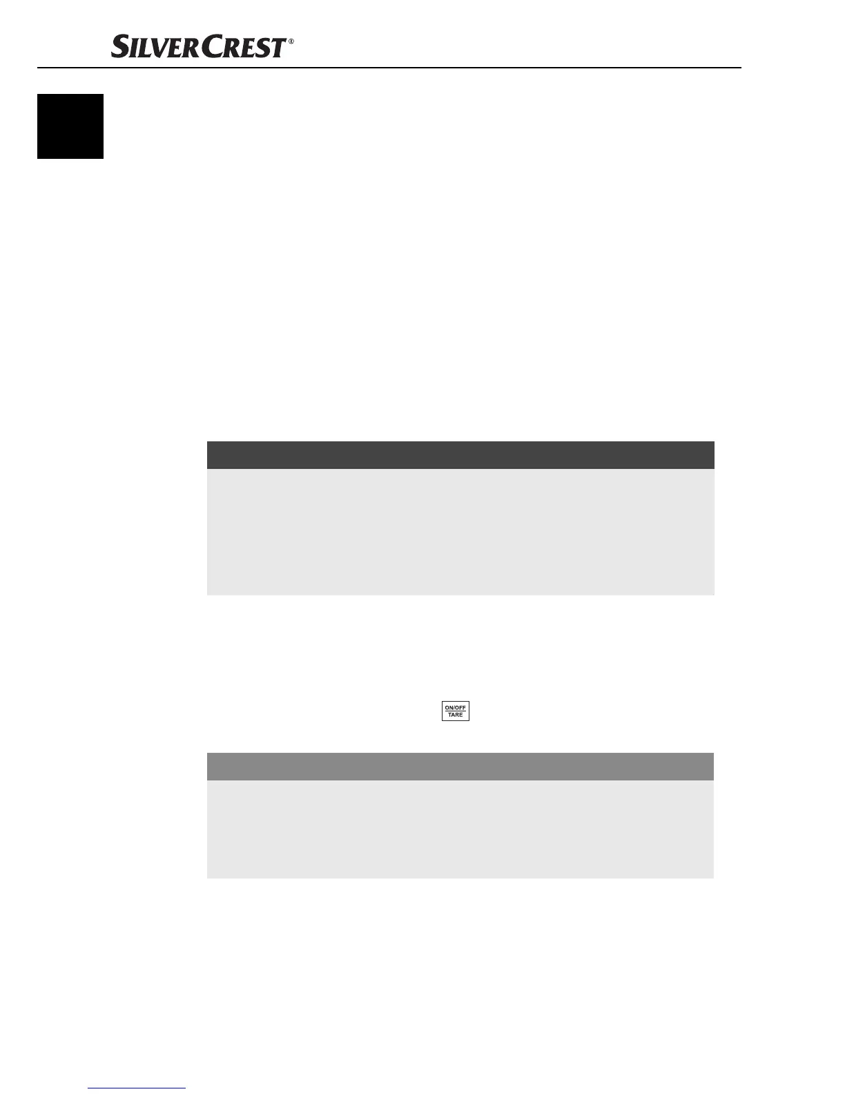 1) Press the button ON/OFF/TARE