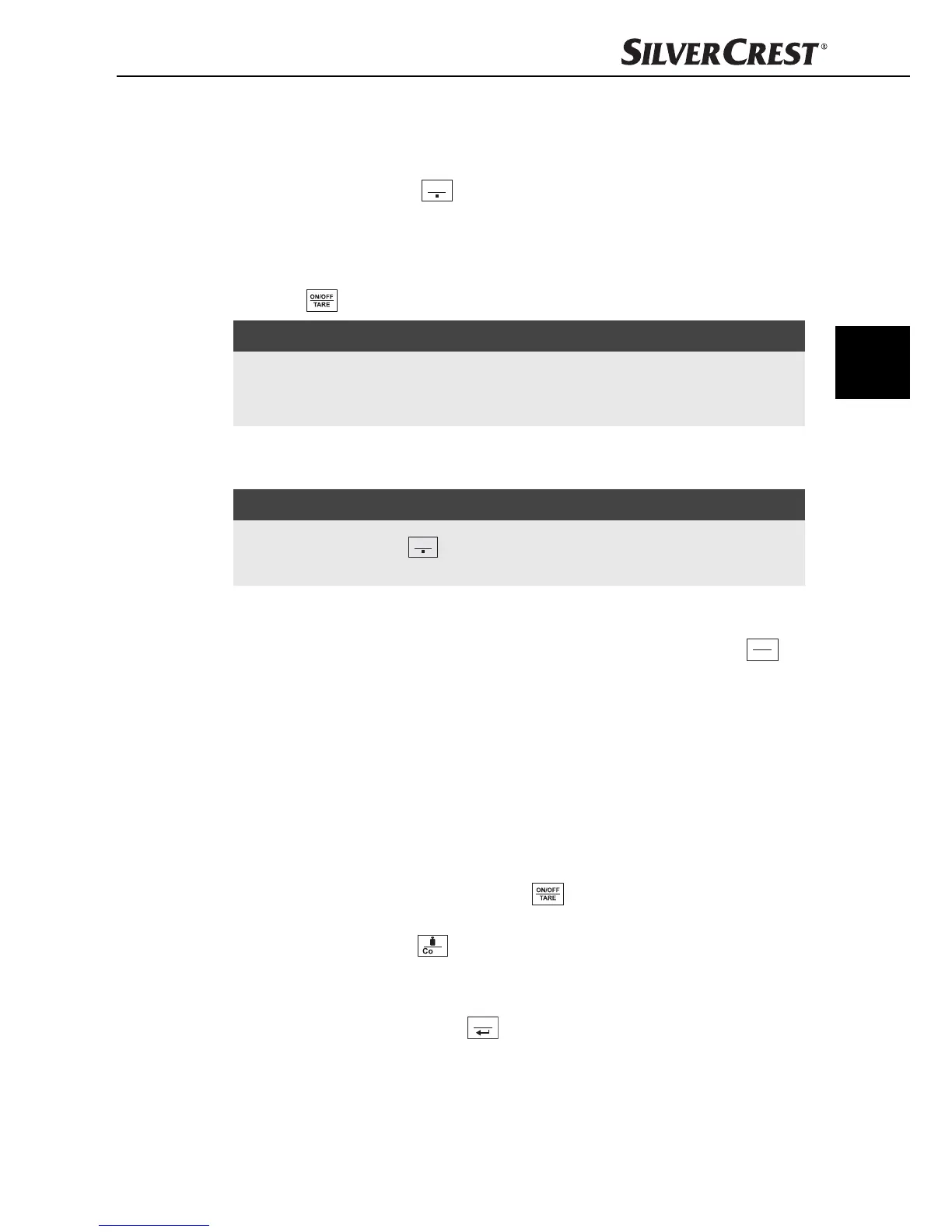 Wenn ca. 8 Sekunden keine weitere Taste gedrückt wird, schaltet die Waage