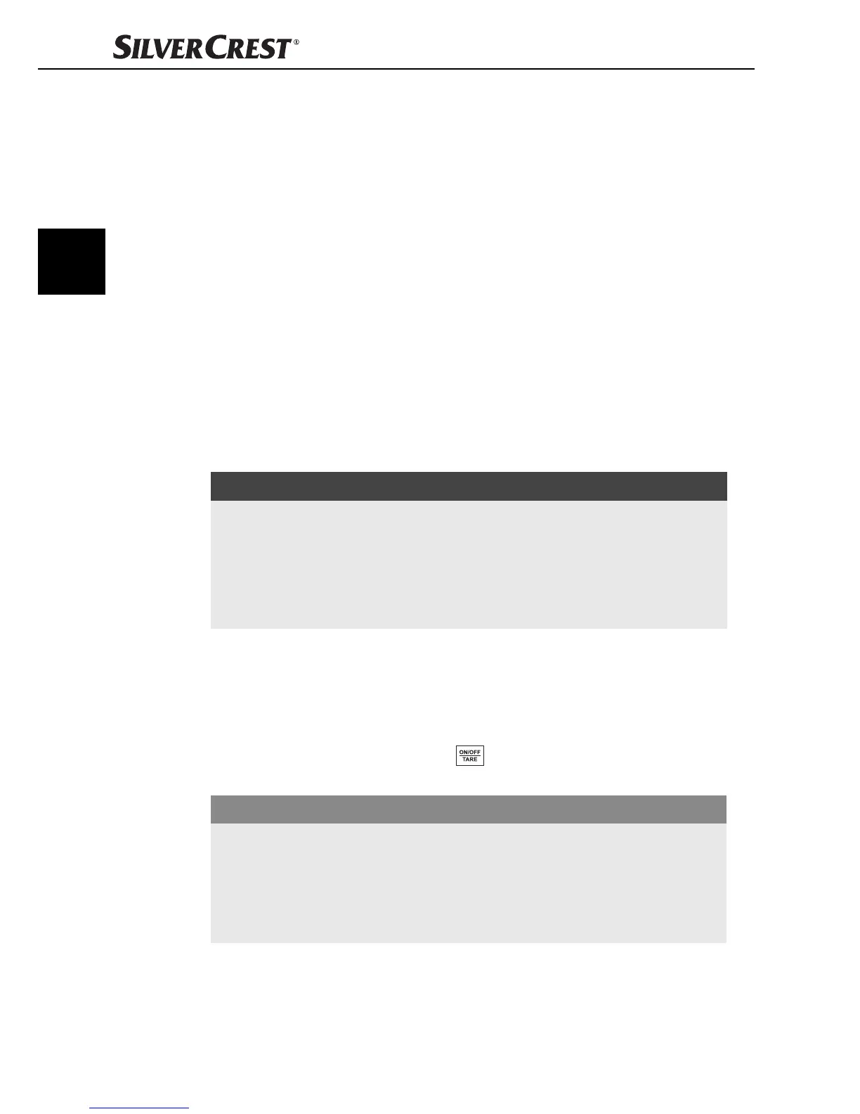 1) Druk op de toets ON/OFF/TARE , om de weegschaal in te schakelen.