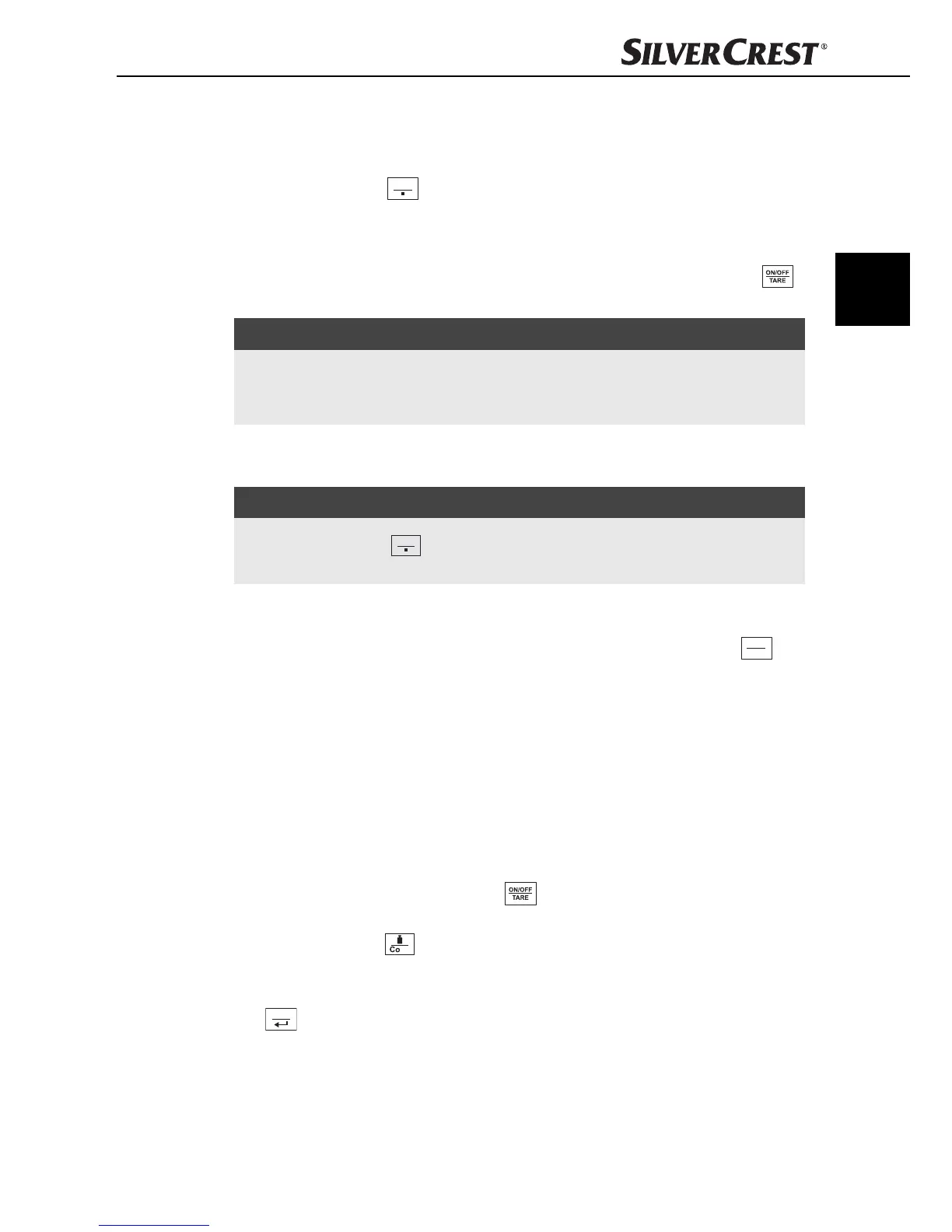 1) Druk op de toets ON/OFF/TARE