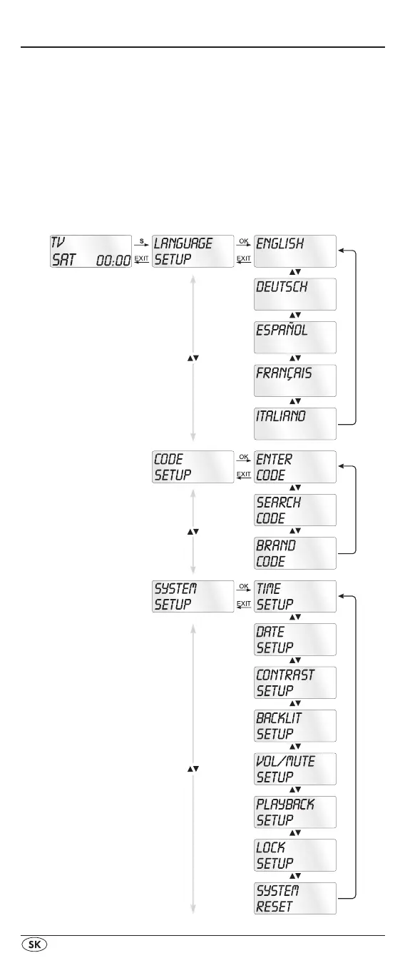 • Nastavenie jazyka menu, času, dátumu, kontrastu displeja,