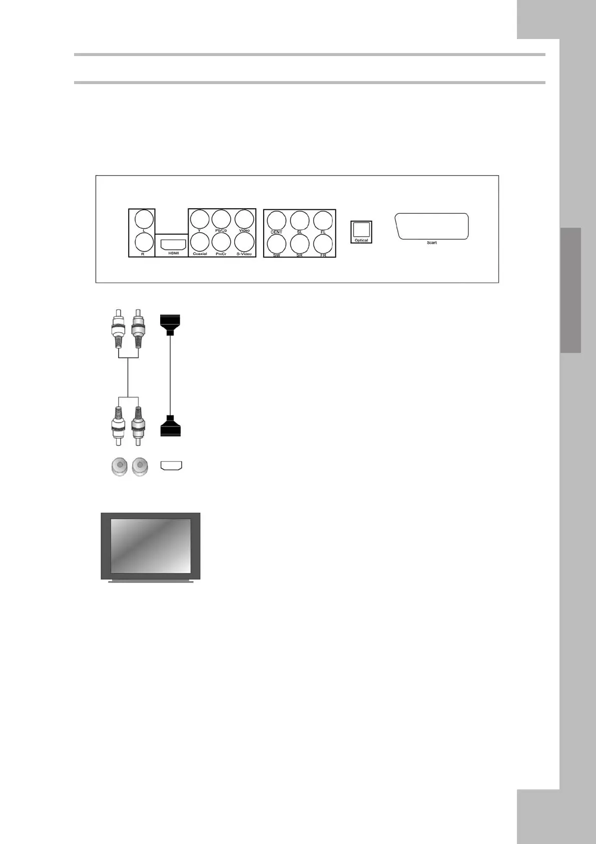 HDMI provides a fully digital transmission of audio and video signals. For this connection type you need a TV