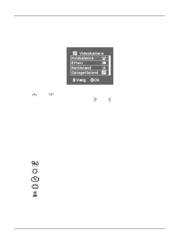For at åbne videomenuen skal du trykke på Menu-knappen [11] i