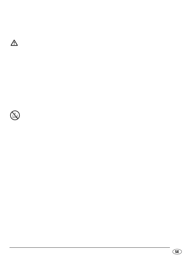 fyllda kärl (t ex blomvaser) på eller bredvid apparaten.
