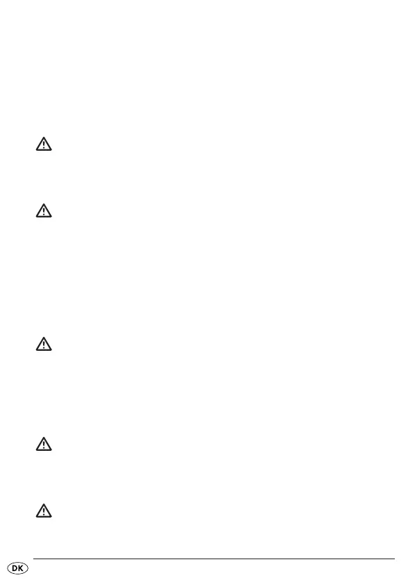 • Hvis apparatet falder ned eller bliver beskadiget, bør du ikke bruge det
