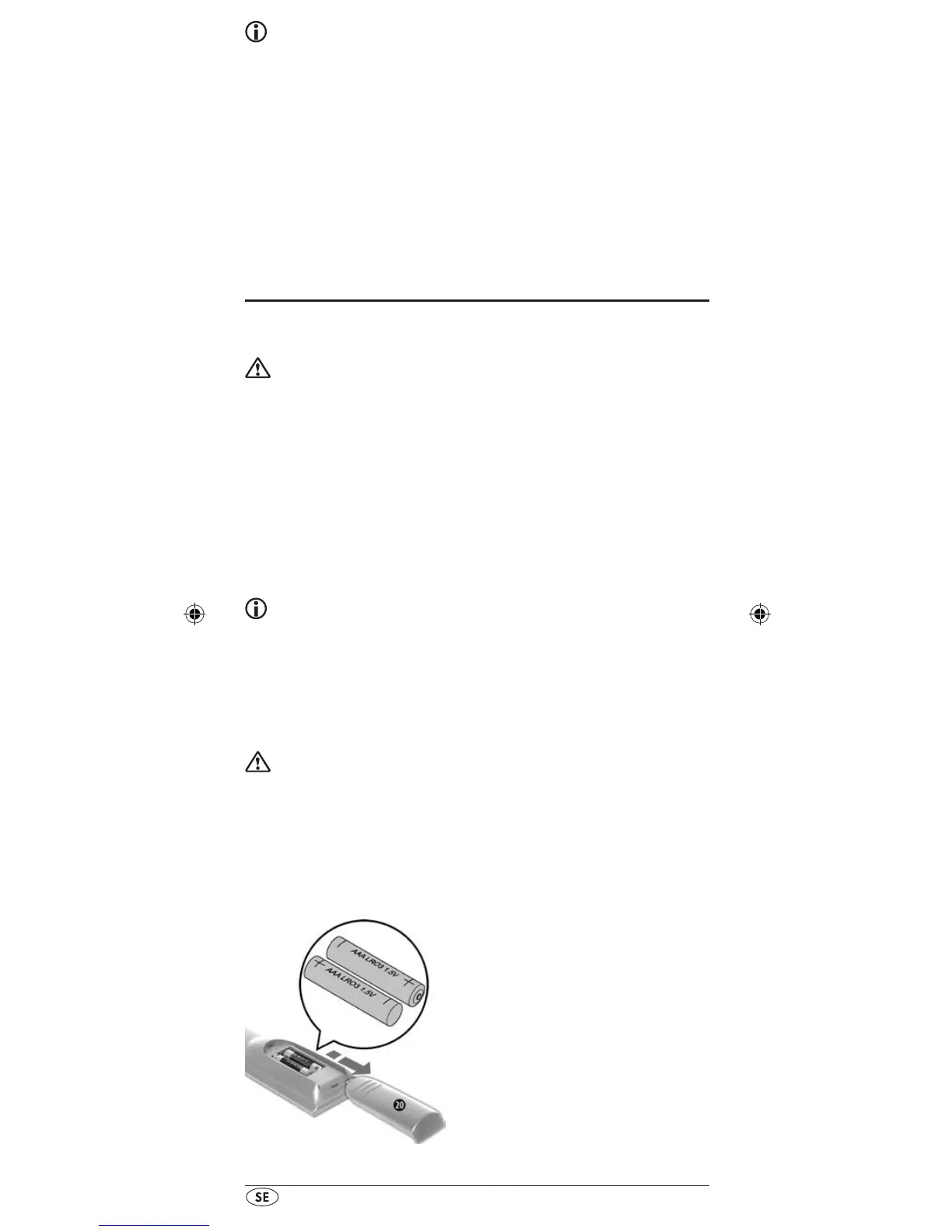Universalfjärrkontrollen får bara drivas med 1,5 V batterier