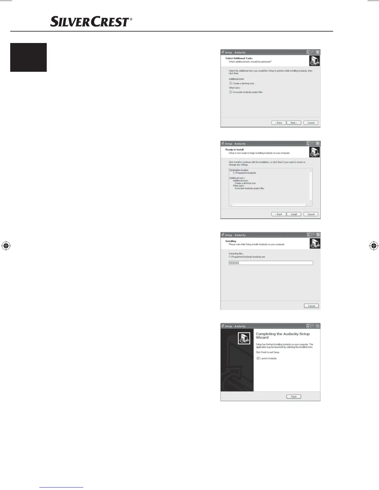 option "Launch Audacity" is selected