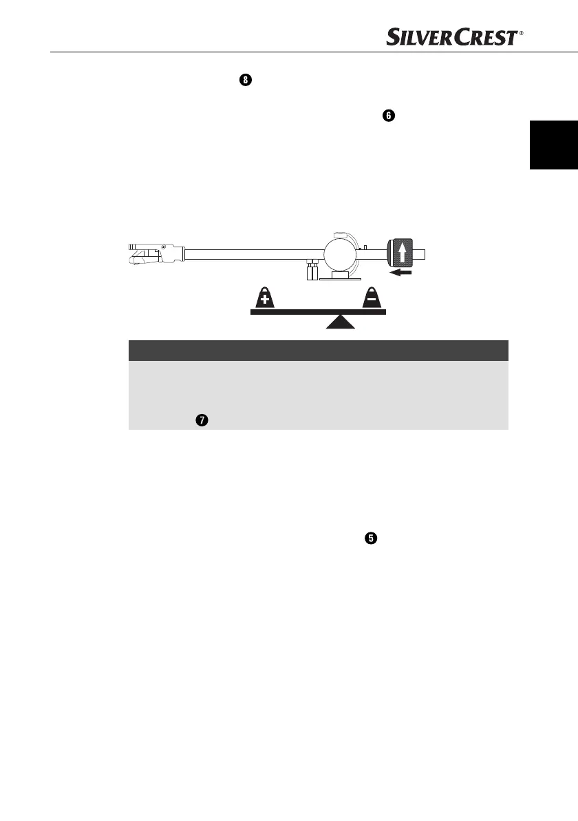 ♦ Ajuste o braço de leitura, rodando o contrapeso , para que este se