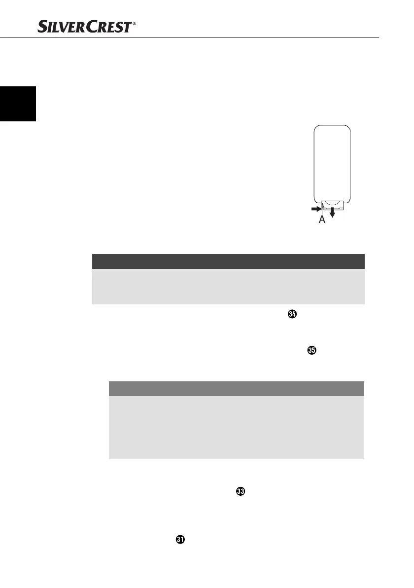 ♦ Prima com a unha do dedo o entalhe (A) para a direita