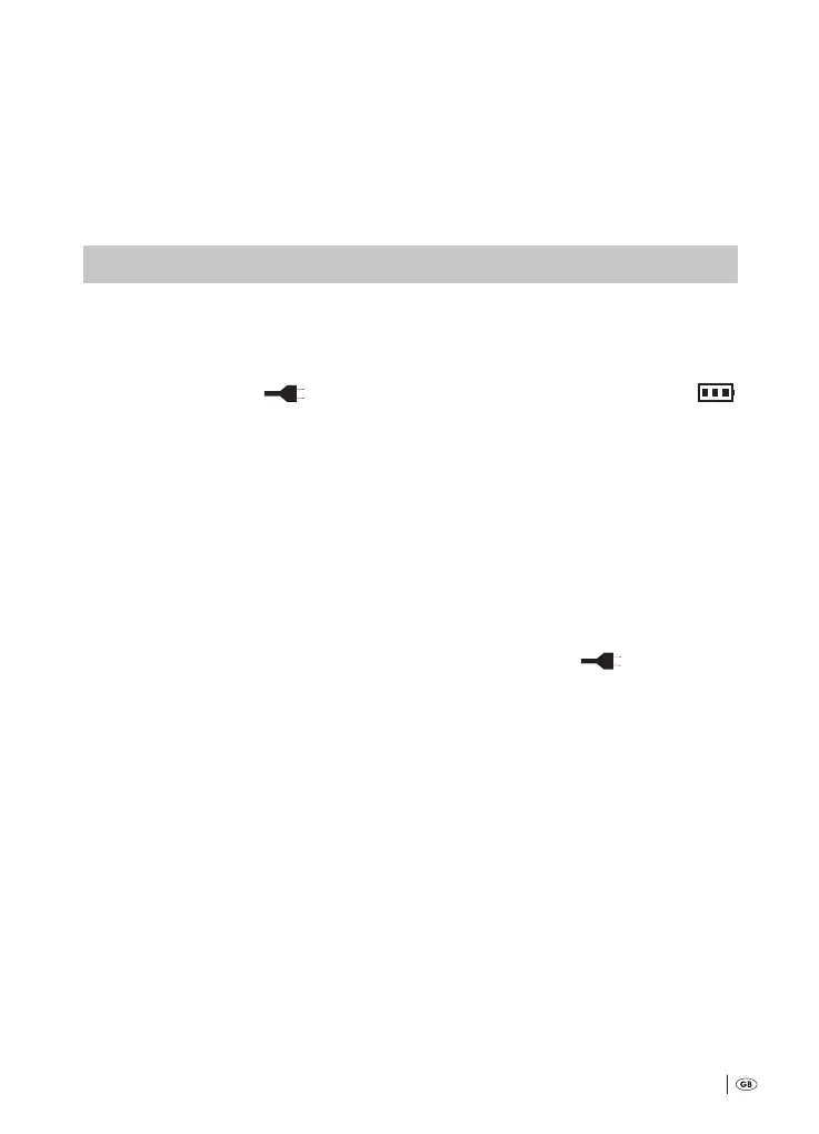 seconds a completely charged battery symbol is shown; subsequently it indi-