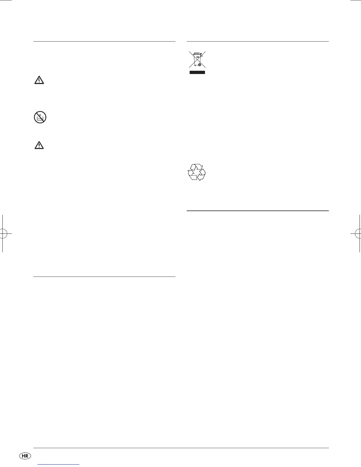 • Ne pokušavajte uređaj rastaviti, odnosno u slučaju