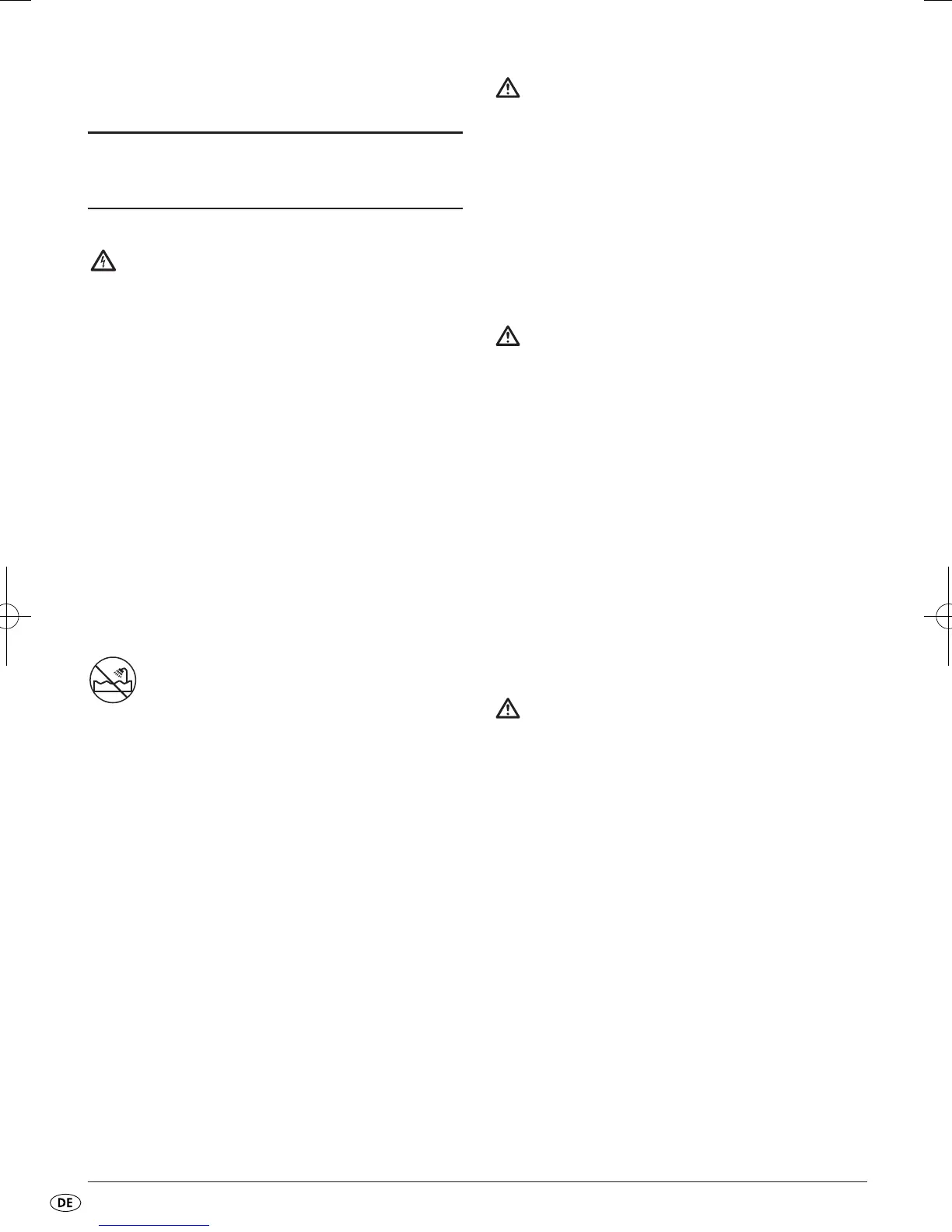 • Tauchen Sie das Gerät nie in Flüssigkeiten. Falls