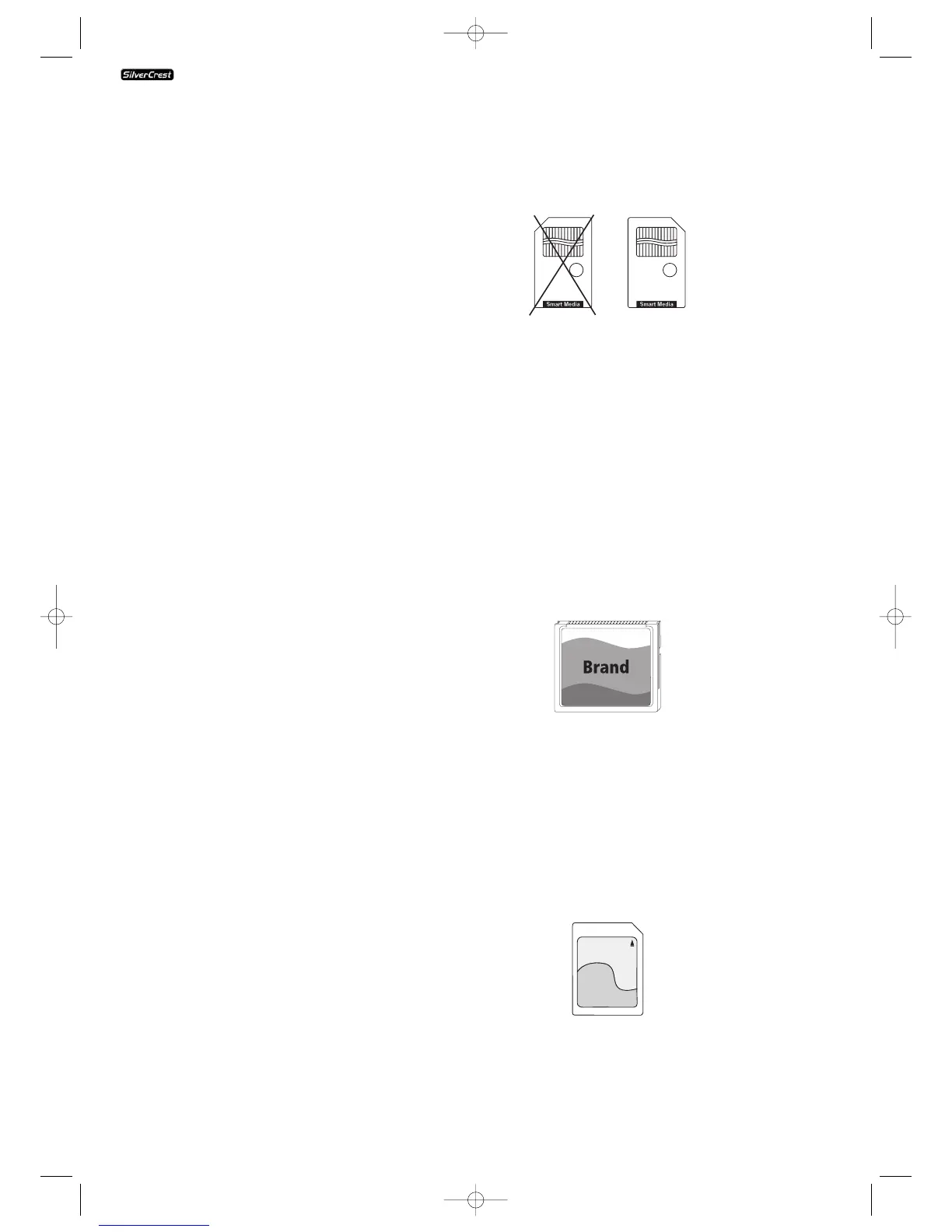 SmartMedia memory cards of type 5 V cannot be used!