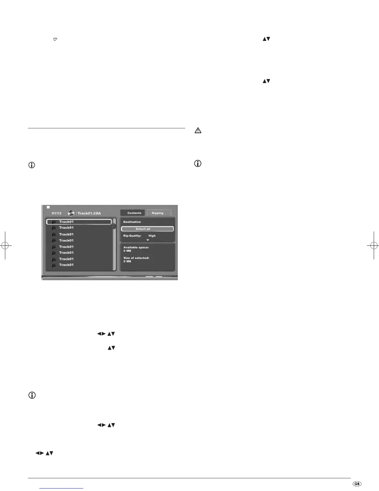 .cda (CD Audio) or from a disc onto a USB memory stick or a memory card.