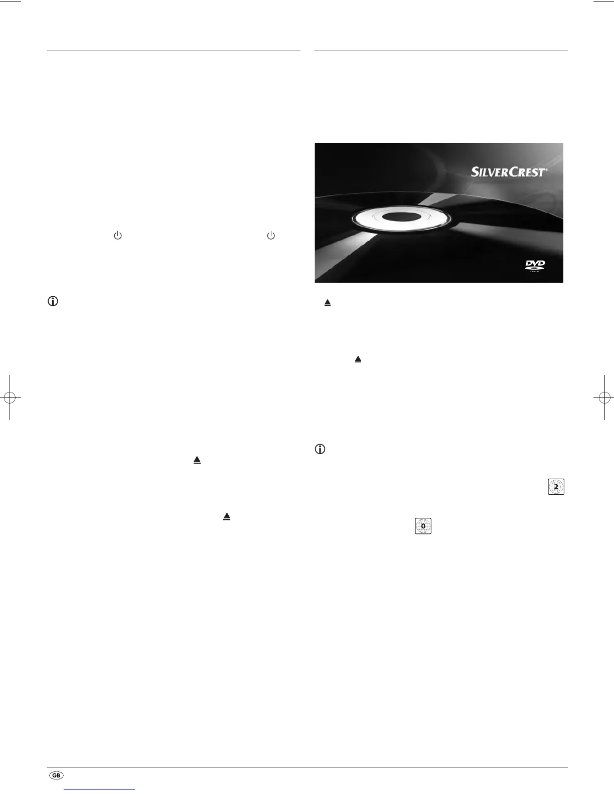 • Open the disc tray on the front panel of the DVD player by pressing the