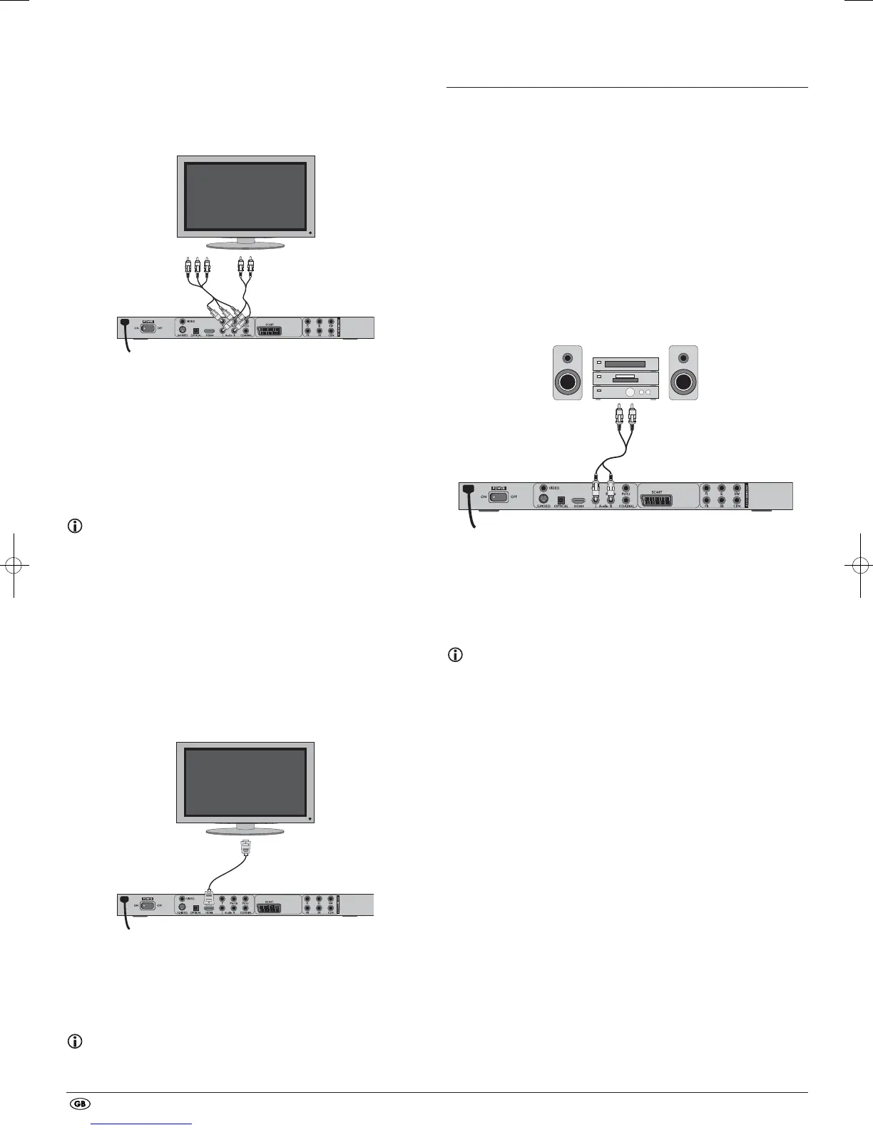 • Connect the audio output sockets
