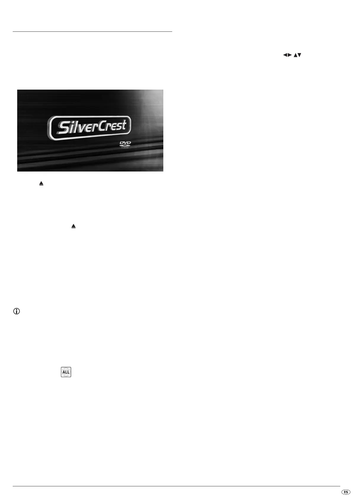 • Abra la bandeja de disco del frontal del reproductor de DVD y pulse