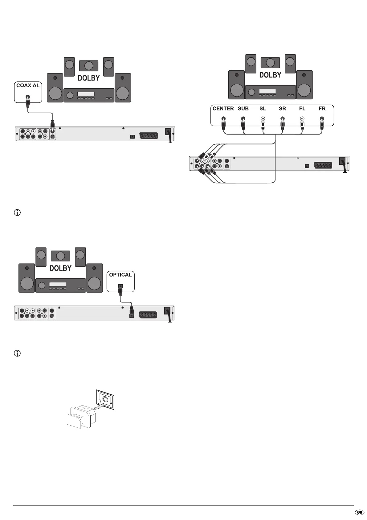 panel of the DVD player and insert the optical cable plug.