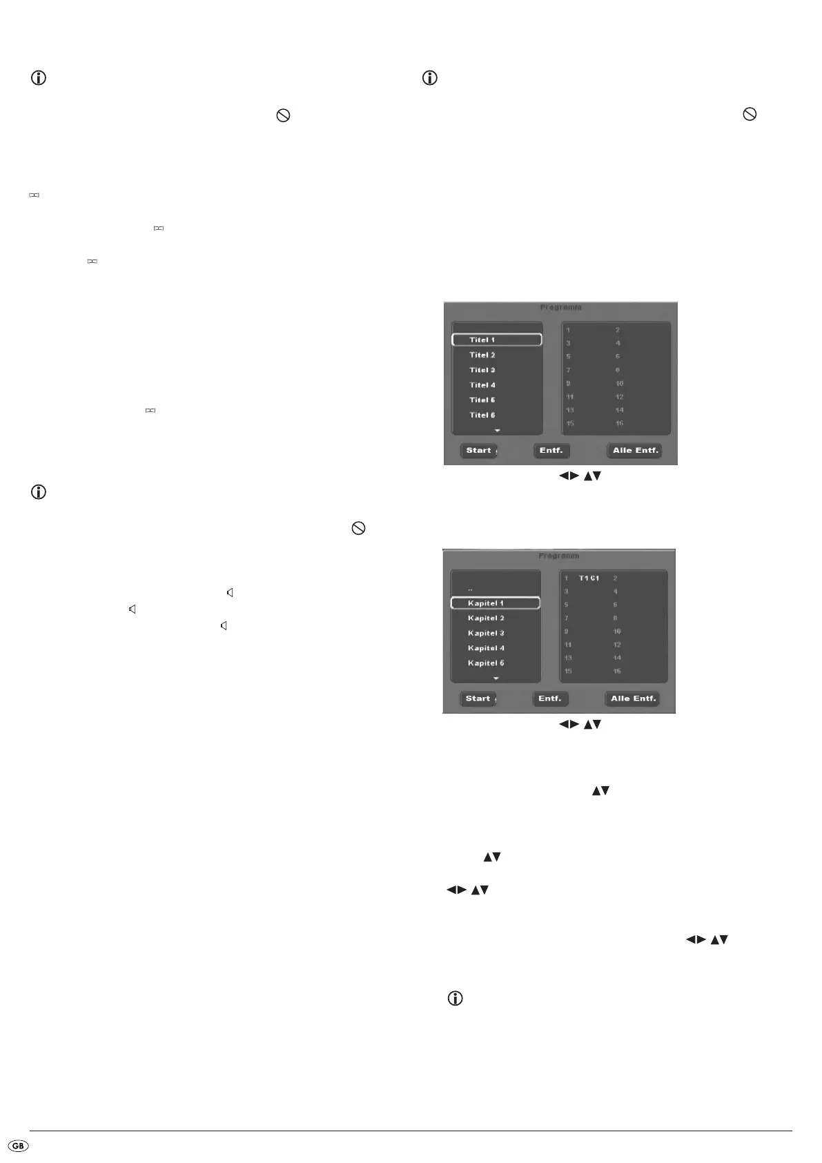 • To programme chapters of other titles select the entry .. with the control