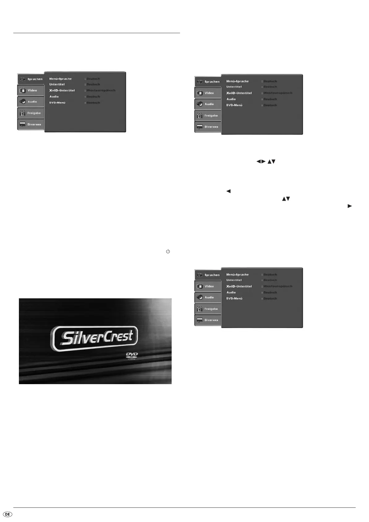 erungstaste , bis der linke Menü-Reiter (Sprachen, Video etc.) aktiv ist.