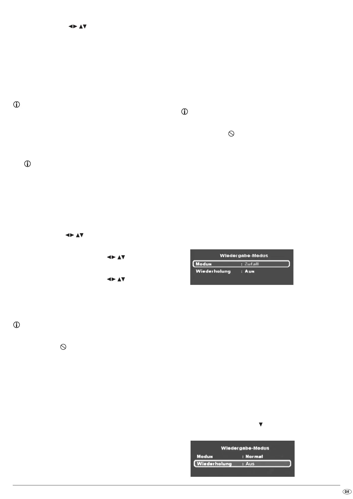 nen. Bei gestoppter Wiedergabe kann zusätzlich zur Zufalls-Wiederga-
