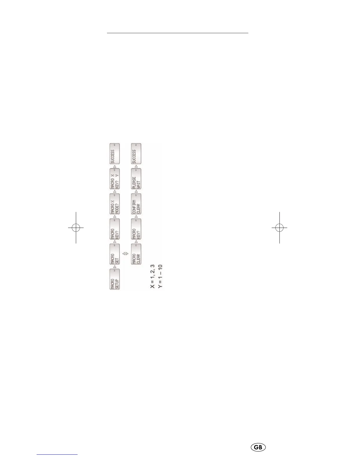 4. Press the right arrow button (6). MACRO KEY? appears in