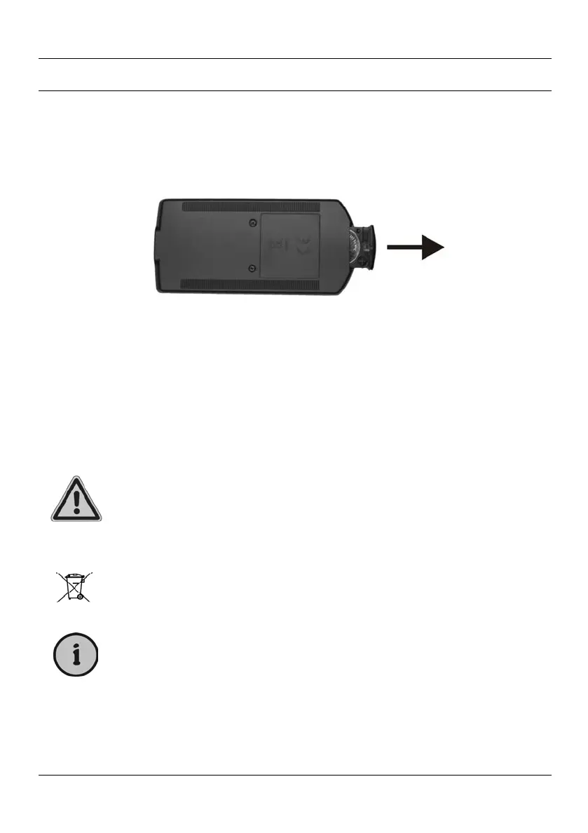 3. Insira o tabuleiro no controlo remoto Assegure-se que o ícone “+” está virado