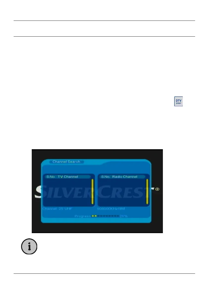 gespeichert sind. Es erscheint die Nachricht „Sendersuche“ (Channel