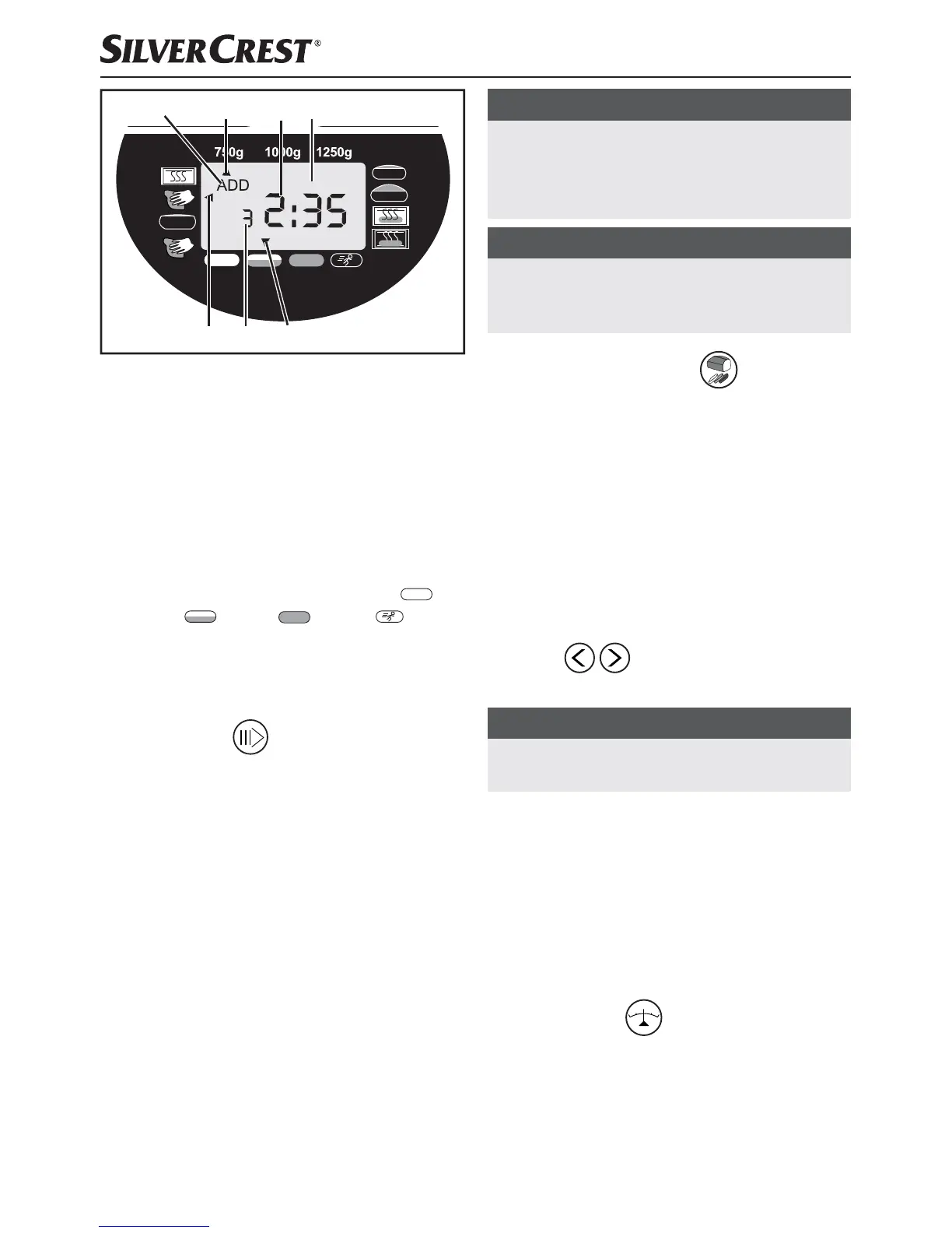 Wahl des Brotgewichtes (750 g / 1000 g / 1250 g).
