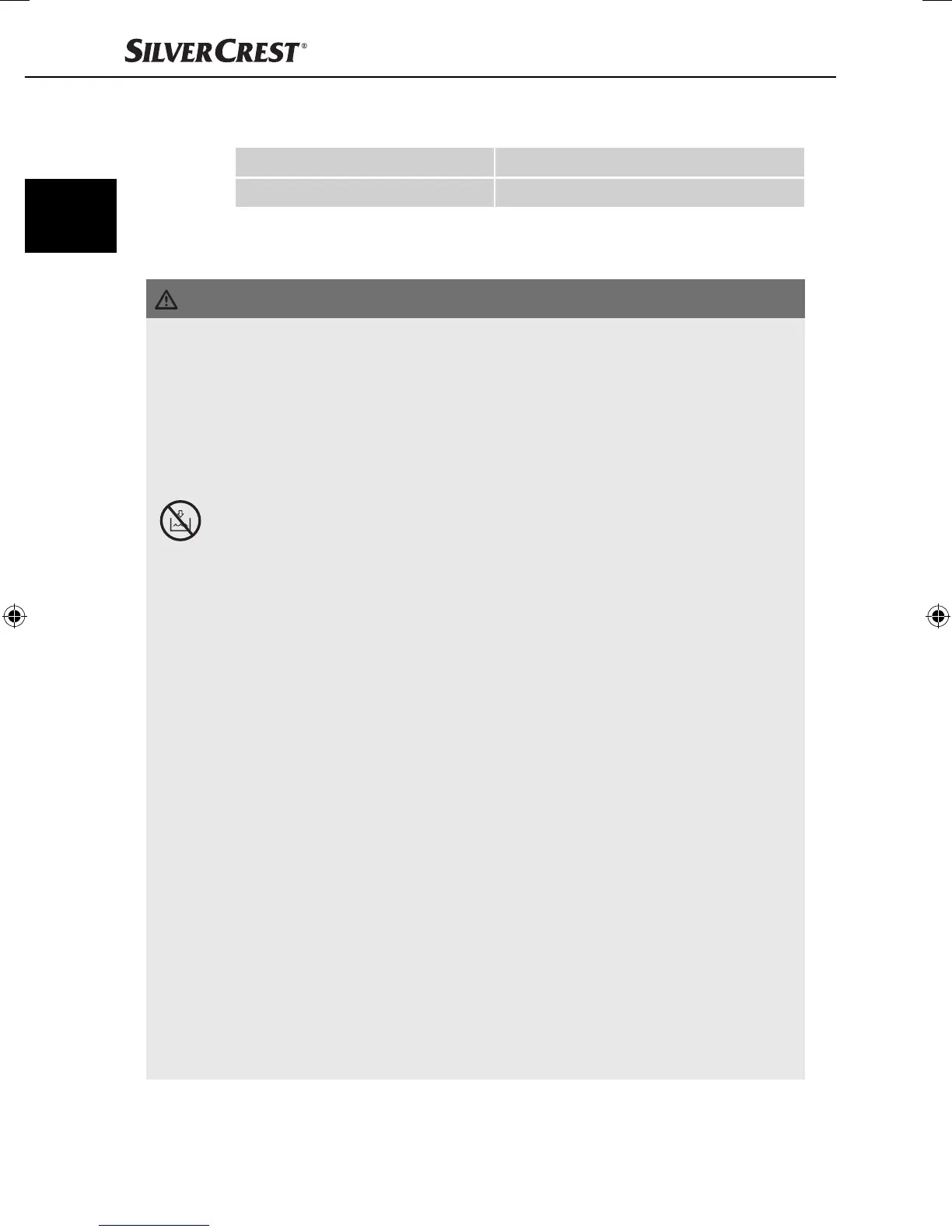 ► Achten Sie darauf, dass im Betrieb das Netzkabel niemals nass
