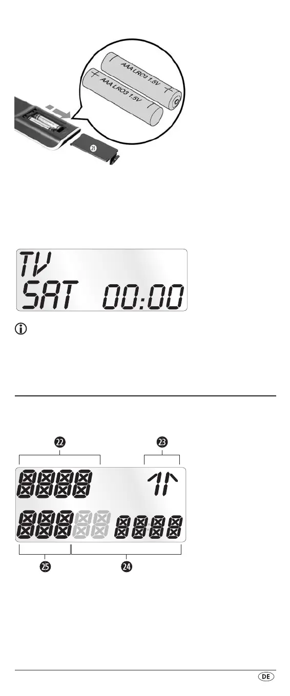Die LCD-Anzeige q ist aktiviert, solange Batterien eingelegt sind.