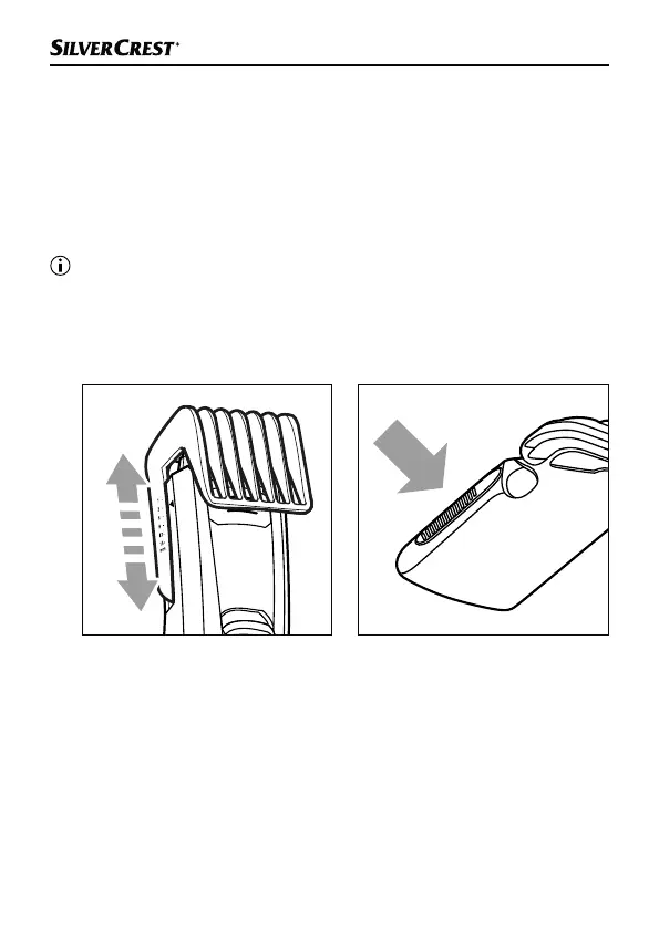 gewenste haarlengte. Druk daarvoor op de knop achter op het