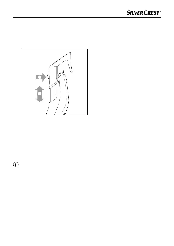 ♦ Naciśnij przycisk z tyłu nasadki grzebieniowej 0/q, i przesuń