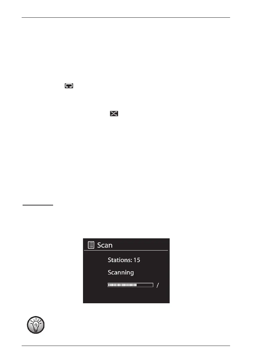 [Shuffle play: Off] Here you can enable or disable shuffle playback for the current playlist or