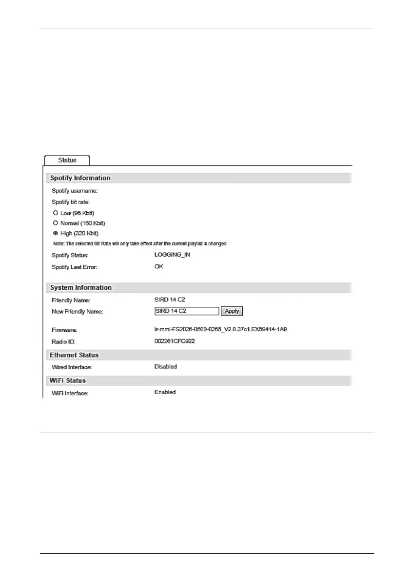 The page that appears shows the current Internet radio name under the "Friendly Name" field.