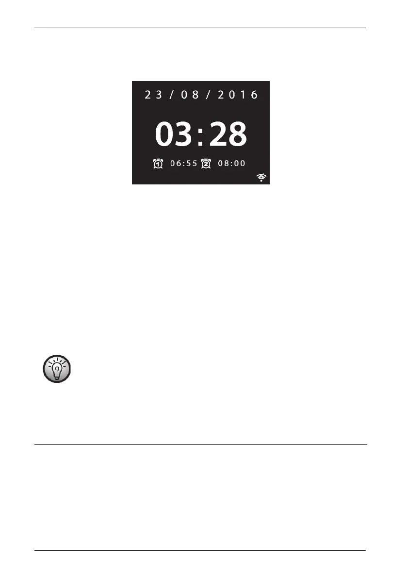starts again. The remaining snooze time before alarm reactivation appears at the bottom of the