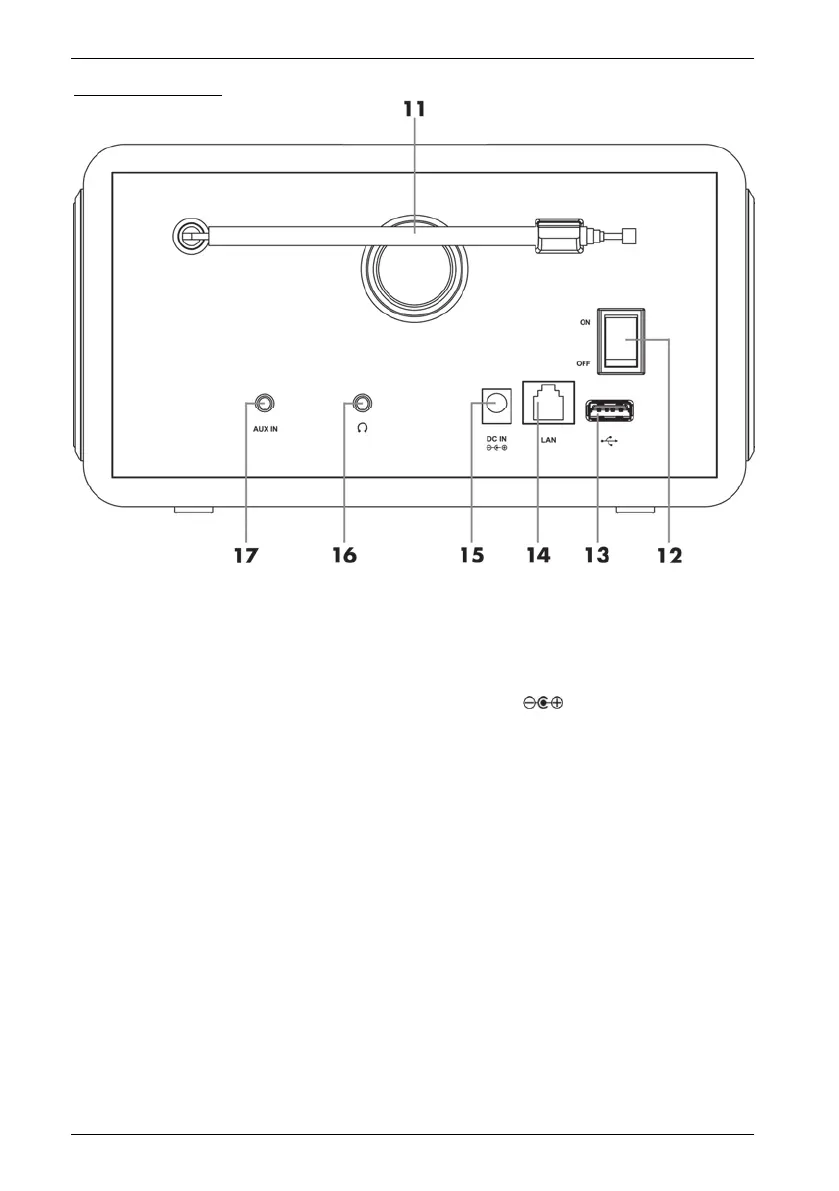 15 Prise DC IN (branchement de l’adaptateur secteur, polarité )